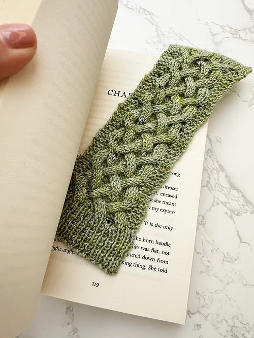 You need to work with ribbing and cable stitching techniques to knit this intricate design. The Celtic cable bookmark is 8 inches long and 2.5 inches wide.