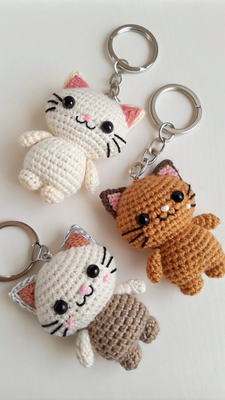 For a quick and cute project, try making a mini crochet cat. This small amigurumi is perfect for turning into a keychain, bag charm, or desk decoration. With its tiny body, pointy ears, and embroidered whiskers, it’s a simple project that still looks detailed. You can play around with different yarn textures — fuzzy yarn makes it extra soft, while cotton gives it a neat, smooth look.