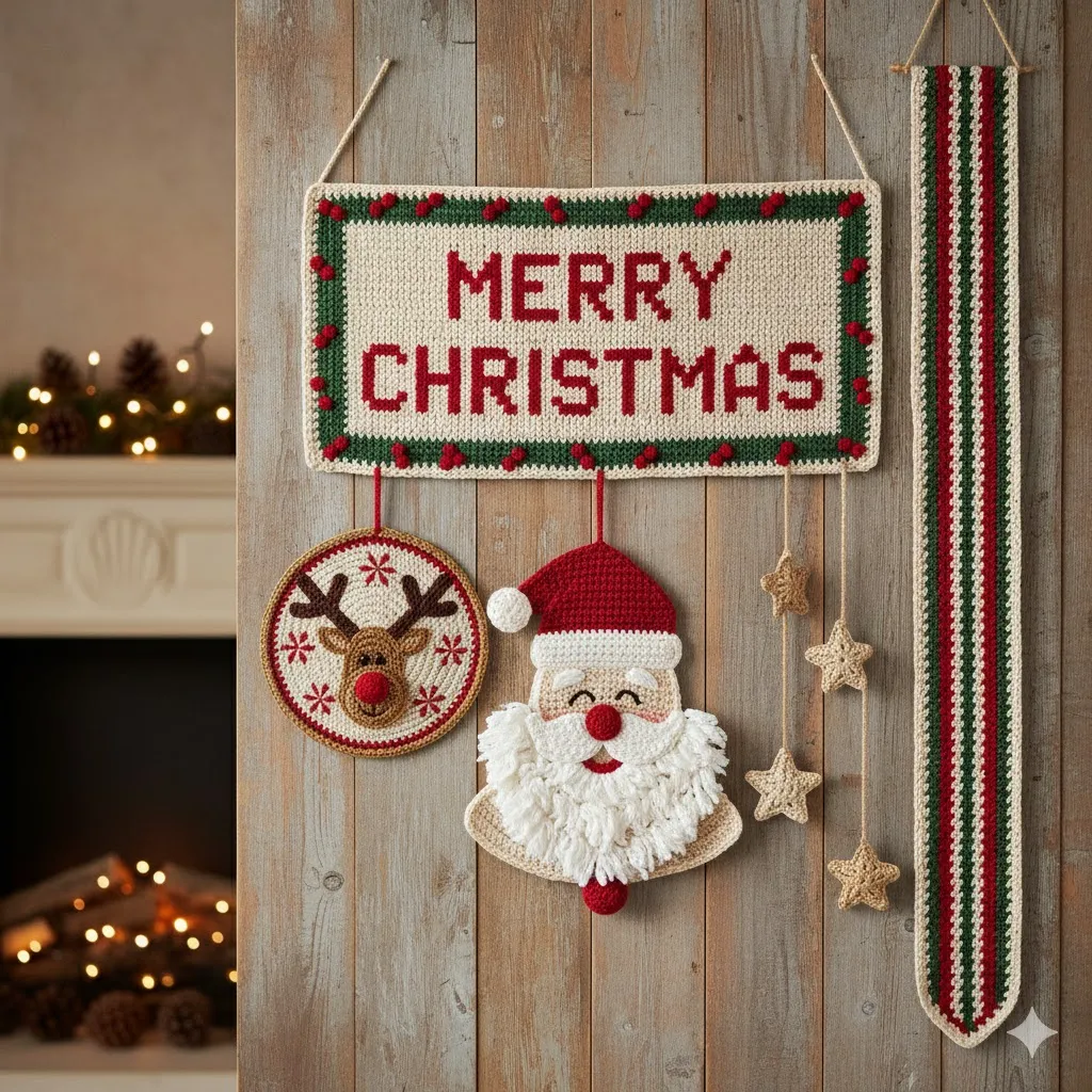 1.Classic Crochet Christmas Wall Hangings & Banners: Add Handmade Magic to Your Holiday Decor.
