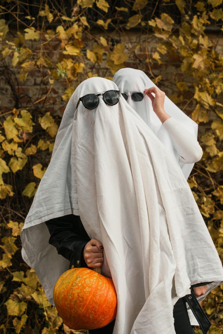 You can never go wrong with a timeless ghost costume. All you need is a white sheet, some scissors, and creativity. Cut out eye holes, drape it over yourself, and add a belt or black accessories for a modern twist.