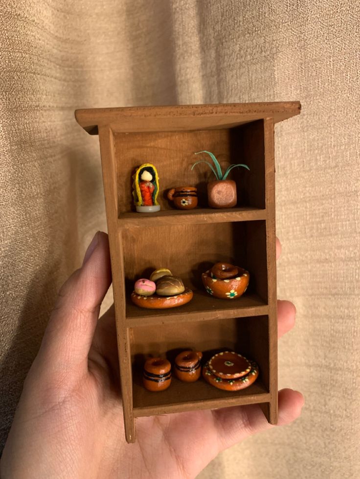 Craft a tiny shelf and fill it with miniature paintings, books, or vases — all handmade. It’s a creative way to showcase your small-scale art collection.