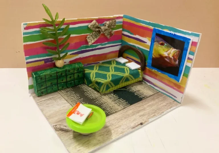 Create a tiny version of your favorite room using cardboard, fabric scraps, and craft glue. From mini sofas to framed wall art, this project allows endless creativity.